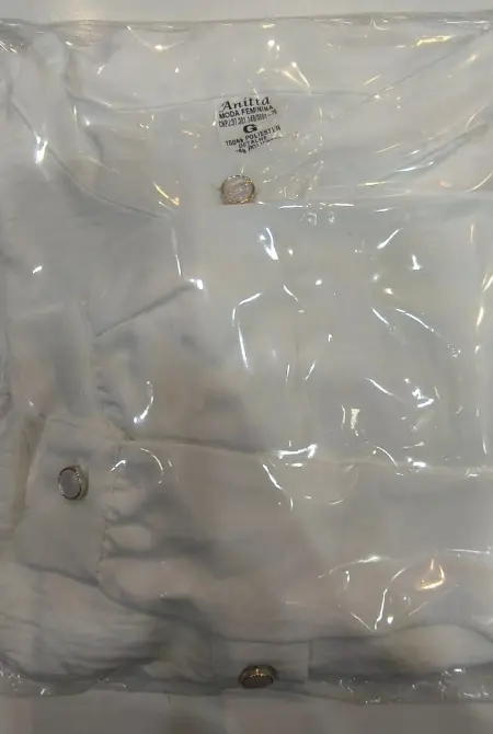 Este tecido em alta tendência combina conforto e elegância em cada detalhe. Os botões perolados adicionam um toque refinado, enquanto a gola de padre confere um estilo clássico e sofisticado.